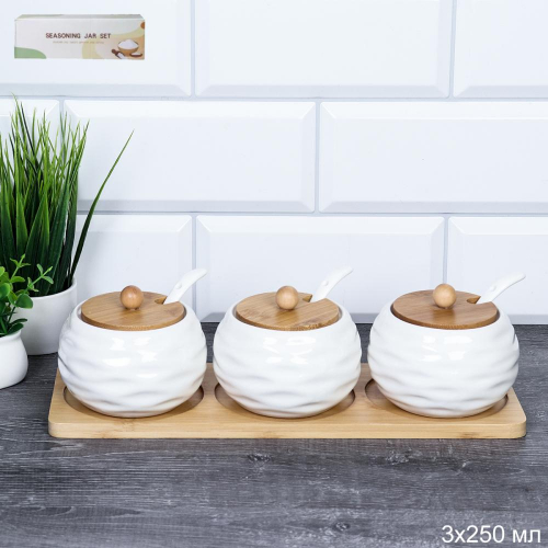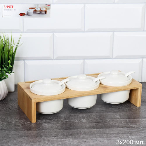 Набор для специй 3 предмета 250 мл с ложкой / CF078 /уп 24/ на деревянной подставке