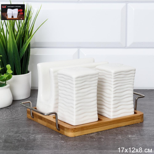 Набор для специй 3 предмета / NS31 /уп 24/ на деревянной подставке