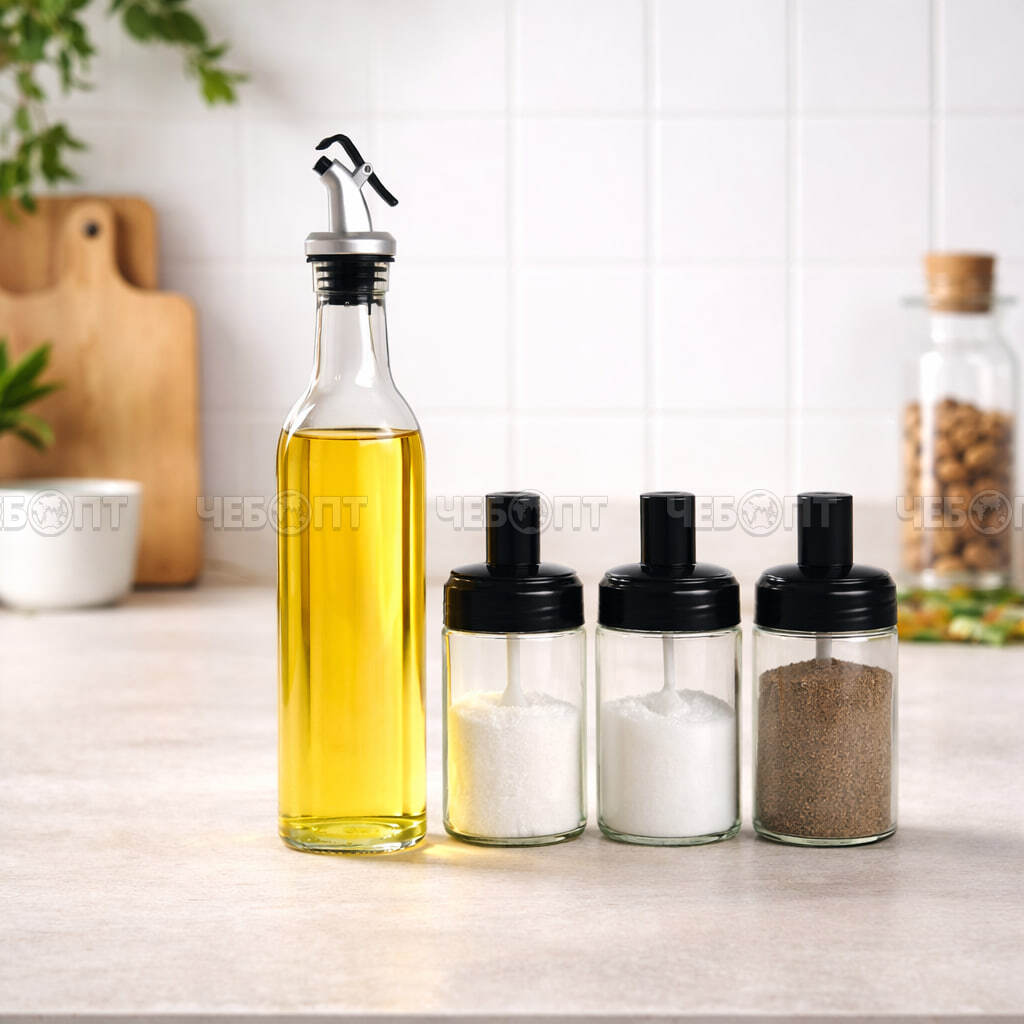 Набор для специй и масла 4 предмета: емкость 500 мл и 3 банки 250 мл с ложкой арт. 300714 [16] GOODSEE. 2 шт.