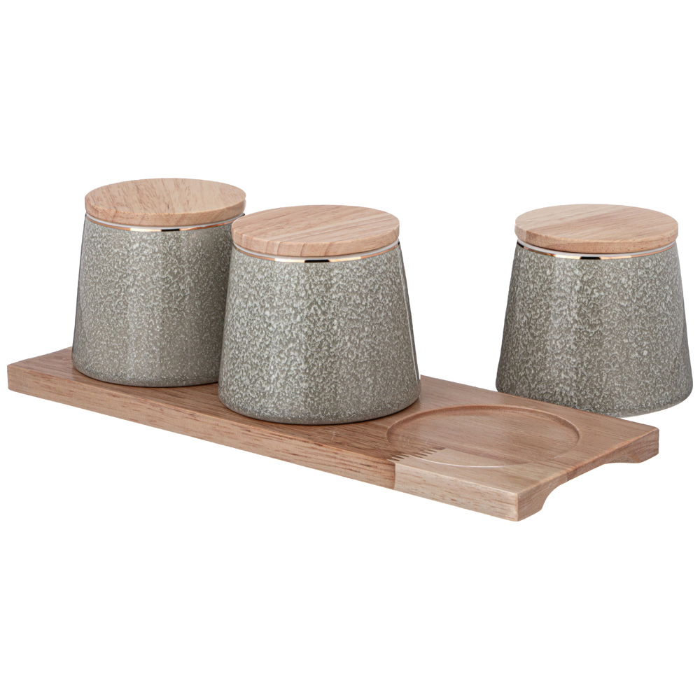 TM Lefard коллекция «Grain» - это модная сервировка стола и стильный кухонный интерьер в модных серых и мятных цветах с золотой окантовкой. Блюда и формы различных размеров, менажницы на бамбуковых подставках, банки, тарелки и салатники различного назначения, чайники, чайные пары и кружки выполнены из упрочненного фарфора. Четкие линии, сверкающее глянцевое покрытие. Вы и Ваш стол неотразим!