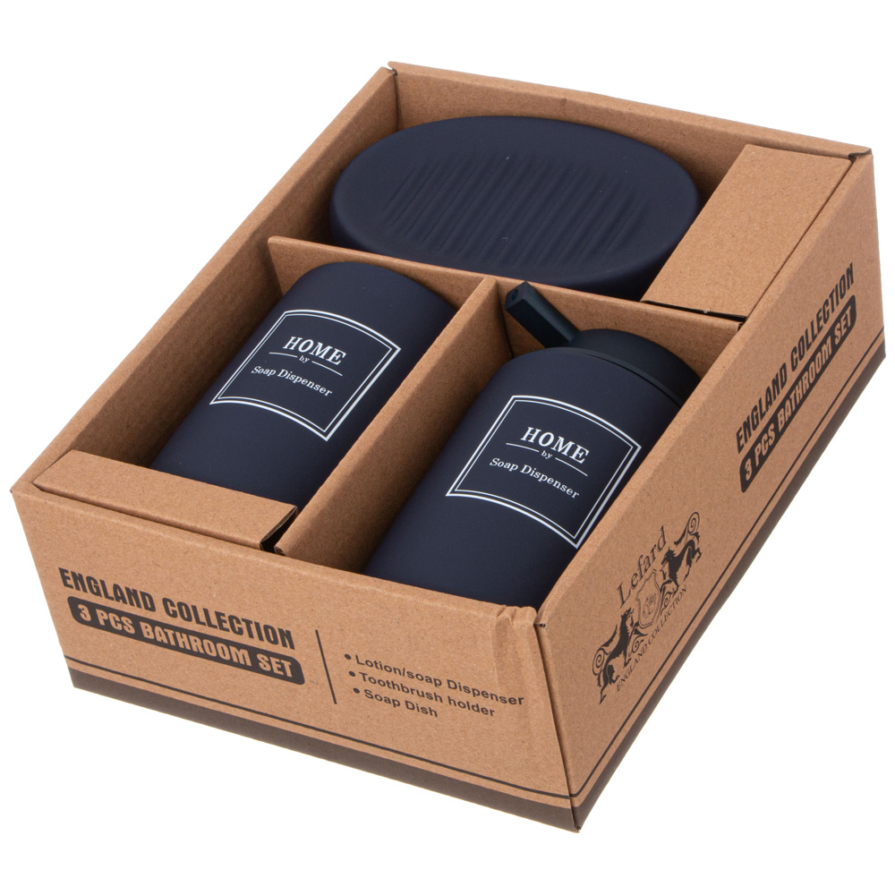 Секрет удачного оформления любого интерьера — яркие аксессуары! Набор предметов для ванной не только внесёт изюминку в интерьер, но и придаст ему стильность, уют и ощущение завершенности. А так же значительно облегчит хранение некоторых принадлежностей. В комплект входят: дозатор для жидкого мыла, стакан для зубных щеток и мыльница.