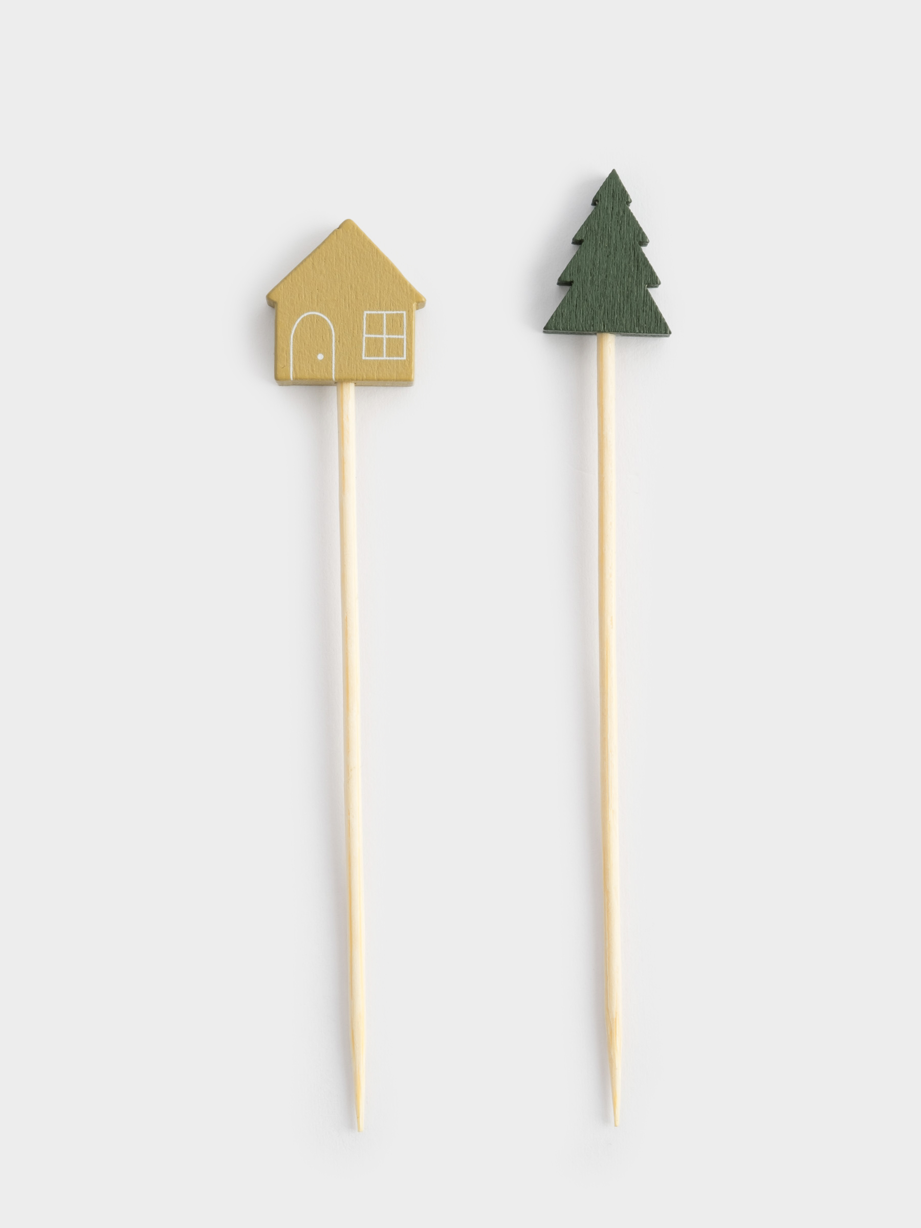 Набор для закусок, 2 пр, на подставке, со шпажками, керамика/дерево, Подарок, New year