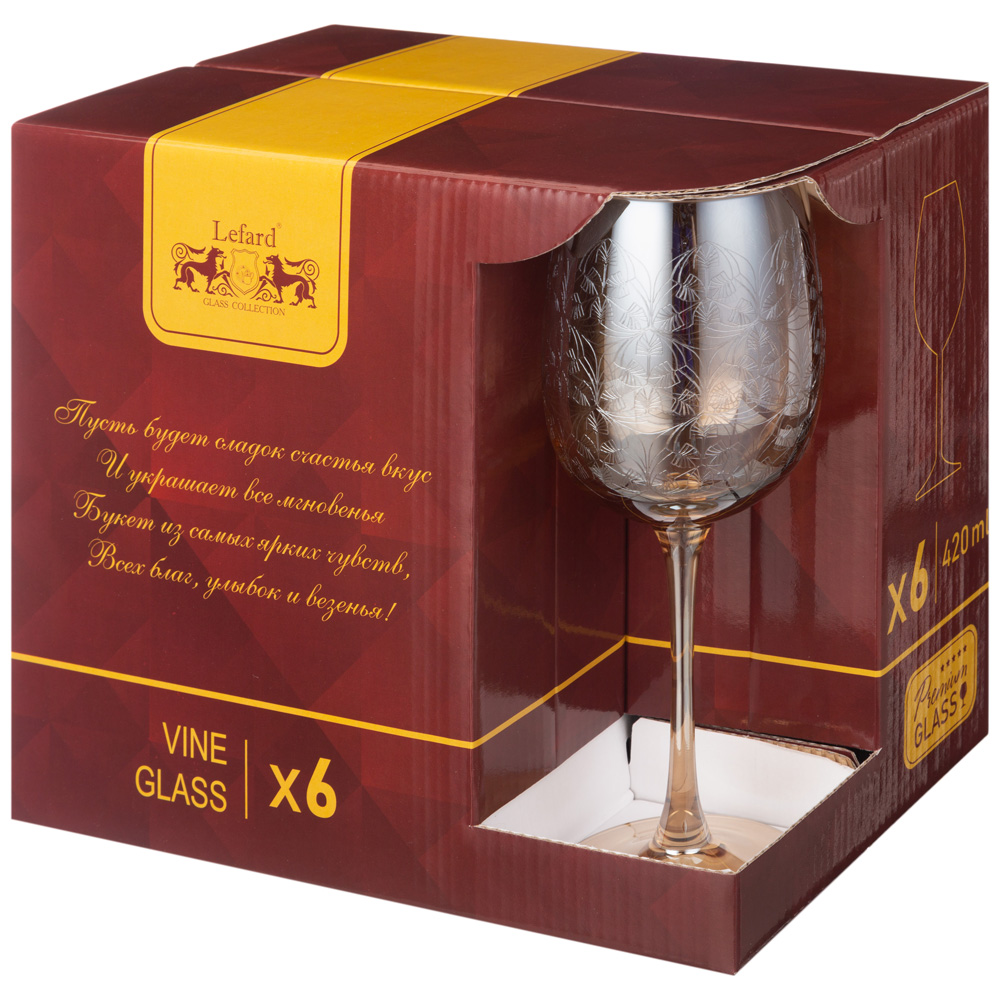Этот изысканный набор фужеров для вина создан, чтобы превратить каждое застолье в настоящий праздник. Каждый фужер украшен неповторимым матовым оттенком, который придаёт ему элегантность и шарм — словно капля благородного вина на свету.