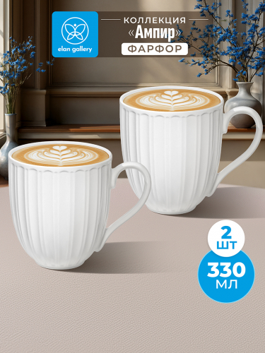 Набор 2 кружек из серии «Ампир» от Elan Gallery предназначен для эстетичной сервировки вашего стола. Размер каждой ёмкости – 12х8,5х9,5 см, объём – 330 мл. Выполнены из высококачественного белого фарфора. Он не впитывает цвет продуктов и легко отмывается, благодаря чему надолго сохранит свою белизну. Поверхность изделий украшает элегантный ребристый рельеф. Кофейные кружки необычной формы помогут вам провести множество приятных завтраков с капучино и латте, а также уютные чайные вечера с конфетами, вафлями и другими десертами и сладостями. Подойдут ценителям чая и кофе, которые любят пить из красивой и необычной посуды. Согрейтесь зимой любимым напитком: какао с маршмэллоу, ягодным чаем или горячим шоколадом. Летом освежитесь домашним лимонадом или морсом. Декоративные изделия позволят организовать запоминающееся чаепитие. Не рекомендуется применять абразивные моющие средства. Подходят для использования в посудомоечной машине и микроволновой печи. Поставляются в дизайнерской картонной коробке – благодаря ей вам не потребуется дополнительная подарочная упаковка. Фарфоровая сервировочная посуда будет оригинальным подарком для хозяйки, ценящей не только практичность, но и привлекательность. Серия «Ампир» от бренда Элан Галерея станет украшением любого кухонного инвентаря и позволит собрать красивый сервиз в едином стиле!