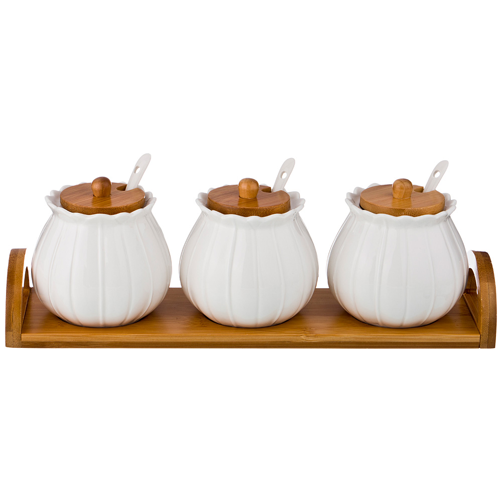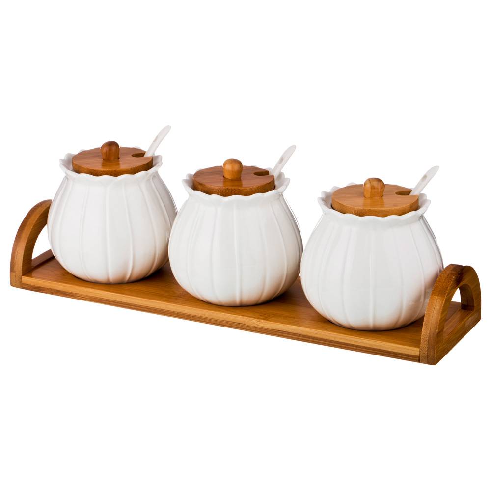 НАБОР САХАРНИЦ LEFARD "NATIVE" 3 ШТ. С ЛОЖКАМИ, 350 МЛ, НА ПОДСТАВКЕ 33,5*8,5*11,5 СМ (КОР=12НАБ.)