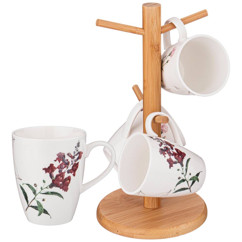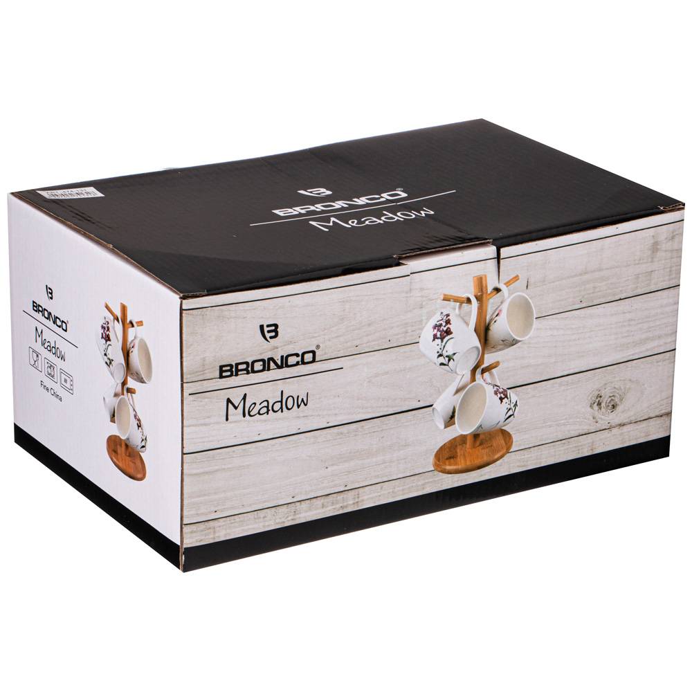 НАБОР ИЗ 4 КРУЖЕК BRONCO "MEADOW" НА ДЕРЕВЯННОЙ ПОДСТАВКЕ 300 МЛ (КОР=12НАБ.)