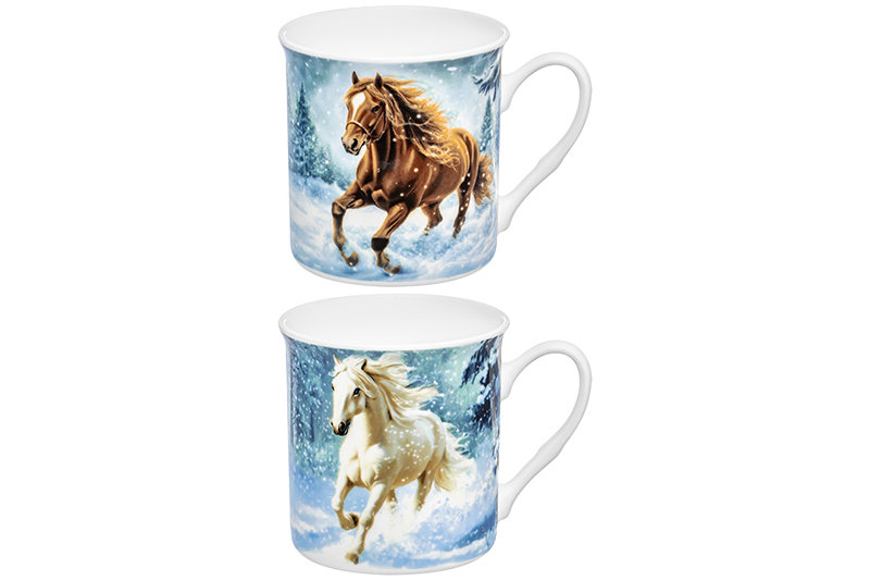 Набор кружек 2 пр. 310 мл 11,5*8,5*9 см "Лошадь в снегу", фарфор