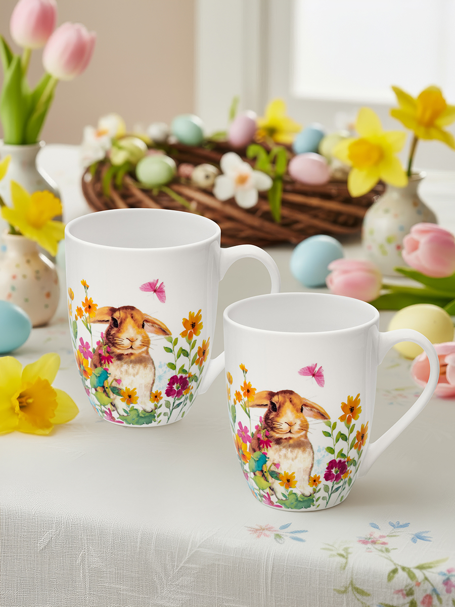 Набор кружек 2 пр. 350 мл 11,5*8,5*10,5 см "Кролик в цветочном поле", фарфор