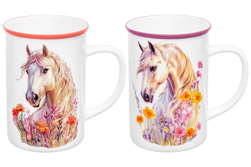 Набор кружек 2 пр. 360 мл 11,5*7,5*11,5 см "Лошадь в цветах" NEW BONE CHINA, фарфор