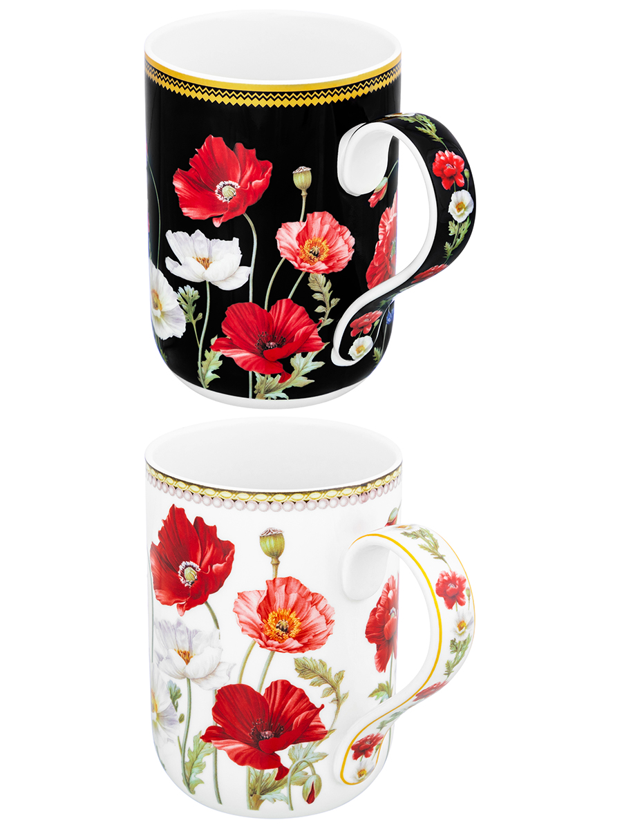 Набор кружек 2 пр. 400 мл 11,5*7,5*10,5 cм "Маки" + "Маки на черном" NEW BONE CHINA