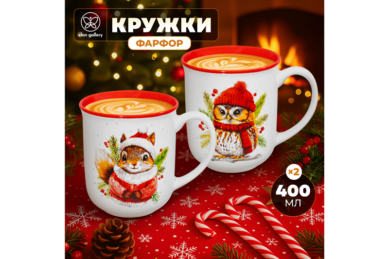 Набор 2 кружек от бренда Elan Gallery "Совушка и белочка" выполнен из фарфора. Размер каждого изделия 12х9х10 см, объём – 400 мл. Посуда красно-белого цвета украшена изображениями милой белочки в зимнем костюме и совёнка в тёплом шарфе и шапке с помпоном. Мы создали коллекцию новогодних и рождественских товаров для сервировки и декора, которые наполнят пространство атмосферой уюта. Изделия помогут оформить интерьер праздничными композициями и добавят нотку зимнего волшебства. Кружечки с красочными рисунками помогут провести множество приятных завтраков с капучино или латте, а также уютных чайных вечеров с любимым горячим напитком. Белые бокалы окрашены внутри красным цветом и имеют контрастное окаймление, что придаёт им праздничный вид. Они подходят ценителям чая и кофе, которые любят пить из красивой посуды. Фарфоровое изделие с принтом отлично подойдёт как для молока, так свежевыжатого сока и морса. Гладкие фарфоровые стеночки в отличие от керамических быстро отмываются и не впитывают цвет напитков. Кружки со стильным дизайном украсят интерьер кухни или столовой. Подойдут как женщине, так и мужчине для кофейных перерывов на работе в офисе. Можно использовать как парные. Не рекомендуется применять абразивные моющие средства. Подходят для микроволновой печи и посудомоечной машины. Набор поставляется в стильной картонной коробке. Благодаря красочной коробочке вам не понадобится дополнительная подарочная упаковка. В коллекции бренда Elan Gallery представлены посуда, сувениры и украшения с новогодней символикой. Каждый подберёт оригинальный сюрприз для семьи, друзей и коллег на Новый год и Рождество. Такой подарок наполнит дом семейным теплом и духом праздника!