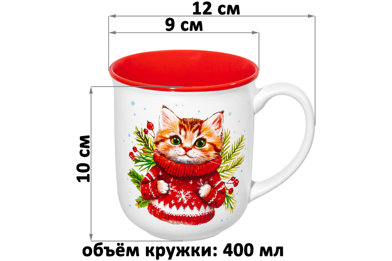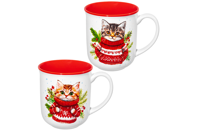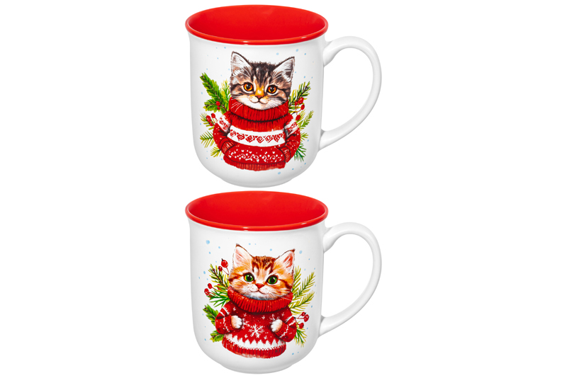 Набор кружек 2 пр. 400 мл 12*9*10 см "Зимние котята", фарфор