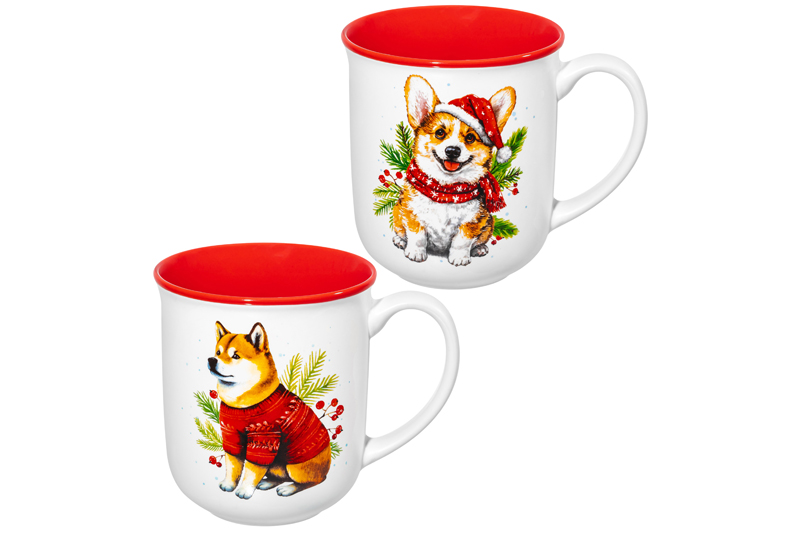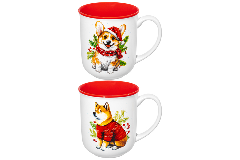 Набор кружек 2 пр. 400 мл 12*9*10 см "Зимние собачки", фарфор
