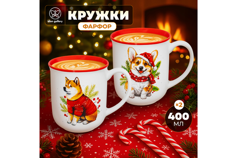 Набор 2 кружек от бренда Elan Gallery "Зимние собачки" выполнен из фарфора. Размер каждого изделия 12х9х10 см, объём – 400 мл. Посуда красно-белого цвета украшена изображениями забавных собачек в новогодней одежде. Мы создали коллекцию новогодних и рождественских товаров для сервировки и декора, которые наполнят пространство атмосферой уюта. Изделия помогут оформить интерьер праздничными композициями и добавят нотку зимнего волшебства. Кружечки с красочными рисунками помогут провести множество приятных завтраков с капучино или латте, а также уютных чайных вечеров с любимым горячим напитком. Белые бокалы окрашены внутри красным цветом и имеют контрастное окаймление, что придаёт им праздничный вид. Они подходят ценителям чая и кофе, которые любят пить из красивой посуды. Фарфоровое изделие с принтом отлично подойдёт как для молока, так свежевыжатого сока и морса. Гладкие фарфоровые стеночки в отличие от керамических быстро отмываются и не впитывают цвет напитков. Кружки со стильным дизайном украсят интерьер кухни или столовой. Подойдут как женщине, так и мужчине для кофейных перерывов на работе в офисе. Можно использовать как парные. Не рекомендуется применять абразивные моющие средства. Подходят для микроволновой печи и посудомоечной машины. Набор поставляется в стильной картонной коробке. Благодаря красочной коробочке вам не понадобится дополнительная подарочная упаковка. В коллекции бренда Elan Gallery представлены посуда, сувениры и украшения с новогодней символикой. Каждый подберёт оригинальный сюрприз для семьи, друзей и коллег на Новый год и Рождество. Такой подарок наполнит дом семейным теплом и духом праздника!