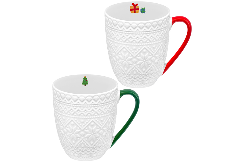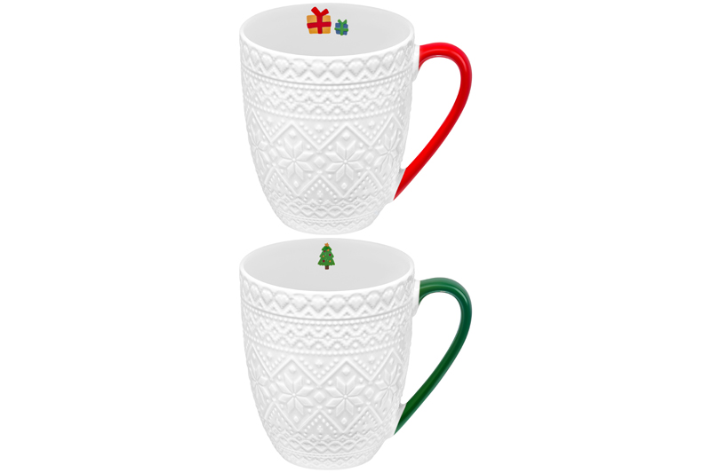 Набор кружек 2 пр. 410 мл 12*9*11 см "Праздничный орнамент", с цветной ручкой, фарфор
