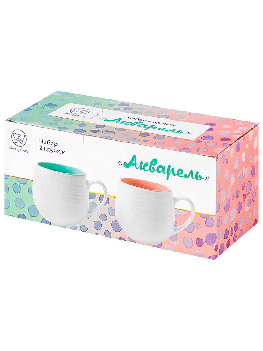 Набор кружек 2 пр. 480 мл 13,5*10,5*9,5 см "Акварель", разноцветные, бочонок, рельефные, фарфор