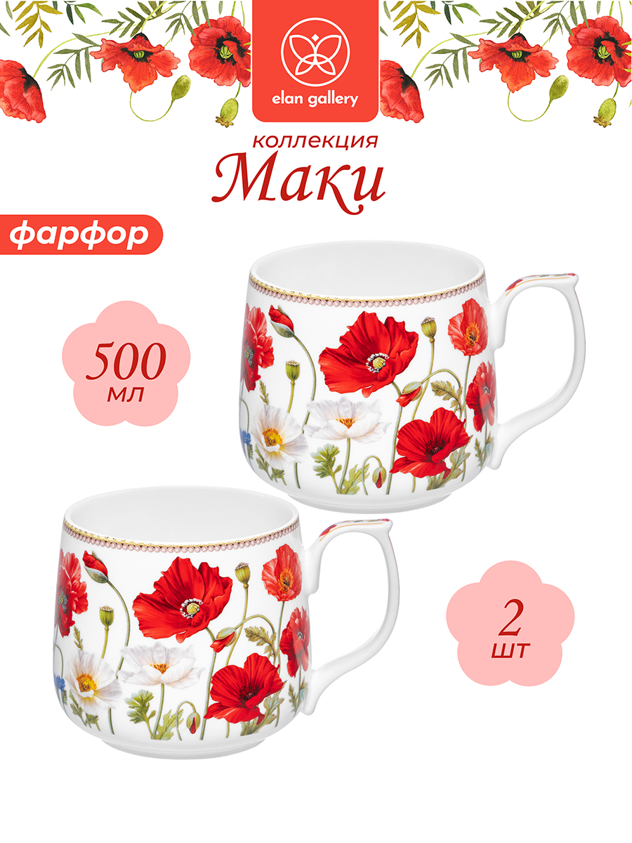 Набор 2 кружек из серии «Маки» от Elan Gallery предназначен для эстетичной сервировки вашего стола. Размер каждой ёмкости – 13,5х10х9 см, объём – 500 мл. Выполнены из фарфора нового поколения new bone china, сочетающего в себе изящность и высокую прочность. За счёт гладкости изделия легко отмываются, поэтому сохраняют привлекательный внешний вид и практичны в использовании. Плотная структура материала позволяет посуде дольше сохранять температуру блюд и напитков. От других видов костяного фарфора new bone china отличается большей экологичностью в производстве. Белая поверхность украшена красочным принтом с крупными цветами. Изображение красных и белых маков на фарфоре добавит ярких красок любой кухне. Кофейные кружки помогут вам провести множество приятных завтраков с капучино и латте, а также уютные чайные вечера с конфетами, вафлями, другими десертами и сладостями. Подойдут ценителям чая и кофе, которые любят пить из красивой и необычной посуды. Согрейтесь зимой любимым напитком: какао с маршмэллоу, ягодным чаем или горячим шоколадом. Летом освежитесь домашним лимонадом или морсом. Не рекомендуется применять абразивные моющие средства. Подходят для использования в посудомоечной машине и микроволновой печи. Поставляются в дизайнерской картонной коробке – благодаря ей вам не потребуется дополнительная подарочная упаковка. Фарфоровая сервировочная посуда будет оригинальным подарком для хозяйки, ценящей не только практичность, но и привлекательность. Серия «Маки» от бренда Элан Галерея станет украшением любого кухонного инвентаря и позволит собрать красивый сервиз в едином стиле!