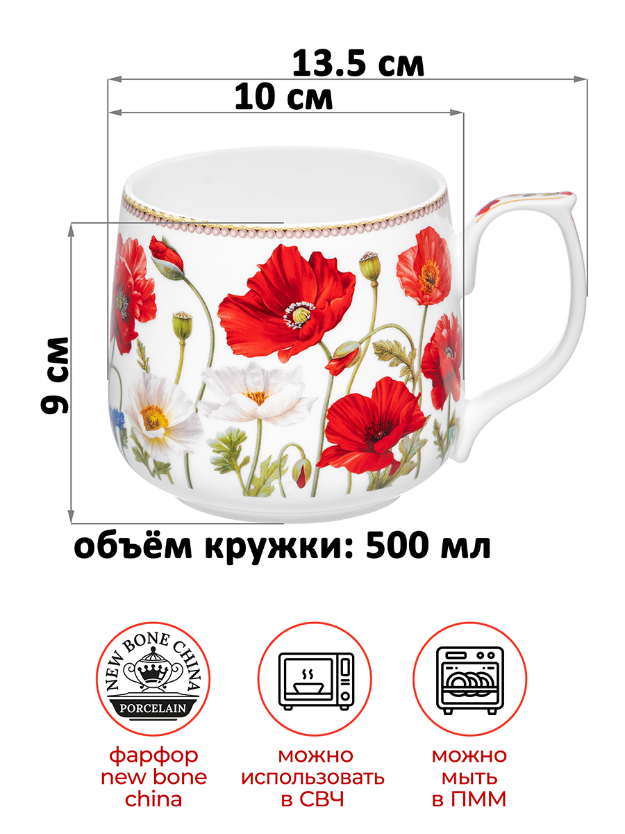 Набор кружек 2 пр. 500 мл 13,5*10*9 см "Маки" NEW BONE CHINA