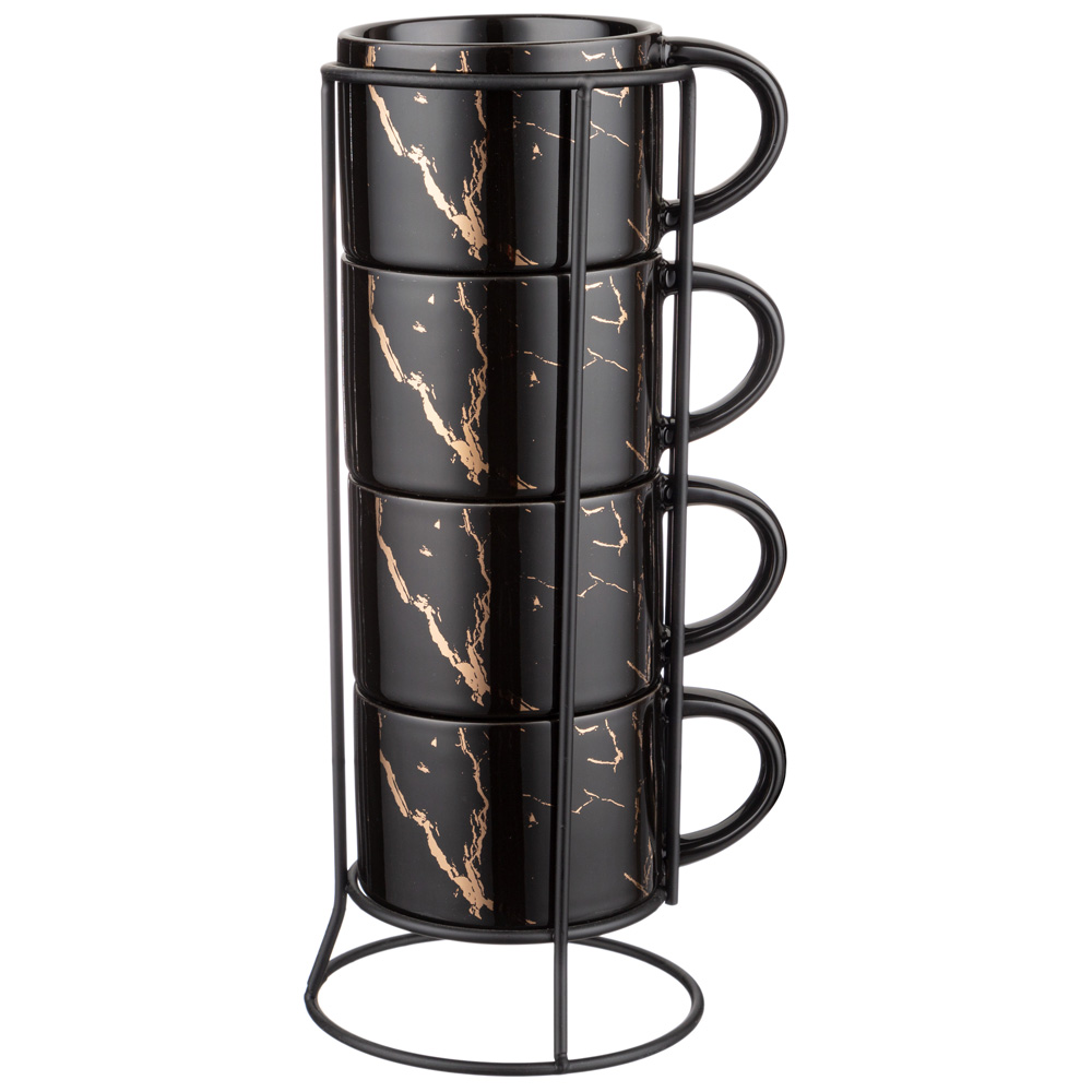 НАБОР КРУЖЕК НА МЕТАЛЛ. ПОДСТАВКЕ LEFARD "FANTASY" 4 ШТ. 300 МЛ ЧЕРНЫЙ (КОР=6НАБ.)