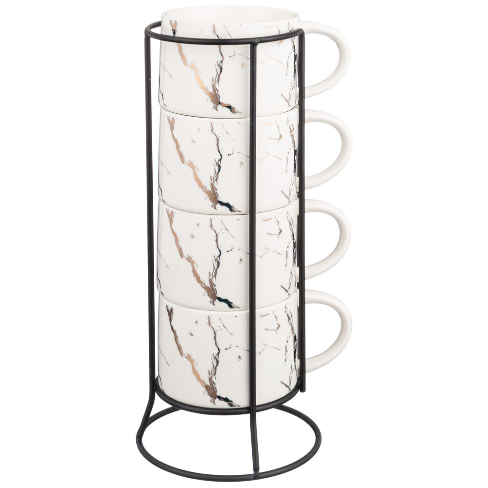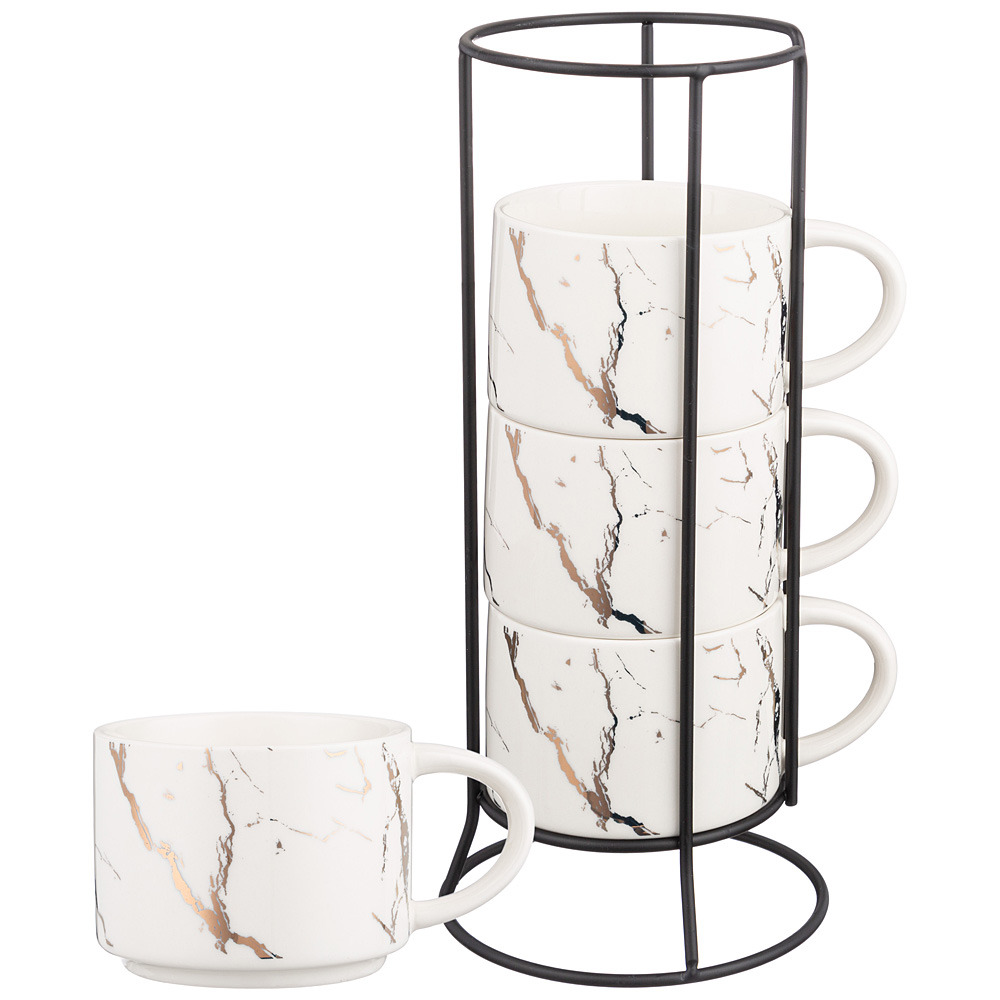 Коллекция "Fantasy" ТМ LEFARD - это модная сервировка стола и стильный кухонный интерьер в классическом белом с золотом цвете. Блюда и формы различных размеров, менажницы на бамбуковых подставках, банки, тарелки и салатники различного назначения, чайники, чайные пары и кружки выполнены из упрочненного фарфора. Четкие линии, сверкающее глянцевое покрытие. Вы и Ваш стол неотразим! Посуда прошла сертификацию. Безопасна для контакта с пищевыми продуктами. Можно использовать в микроволновой печи. Не рекомендуется мыть в посудомоечной машине. Комплектность: 4 кружки 300 мл, подставка металлическая
