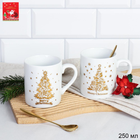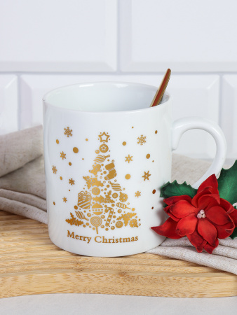 Набор кружек новогодних 4 предмета,кружки и ложки в п/у / H-3045 /уп 36/