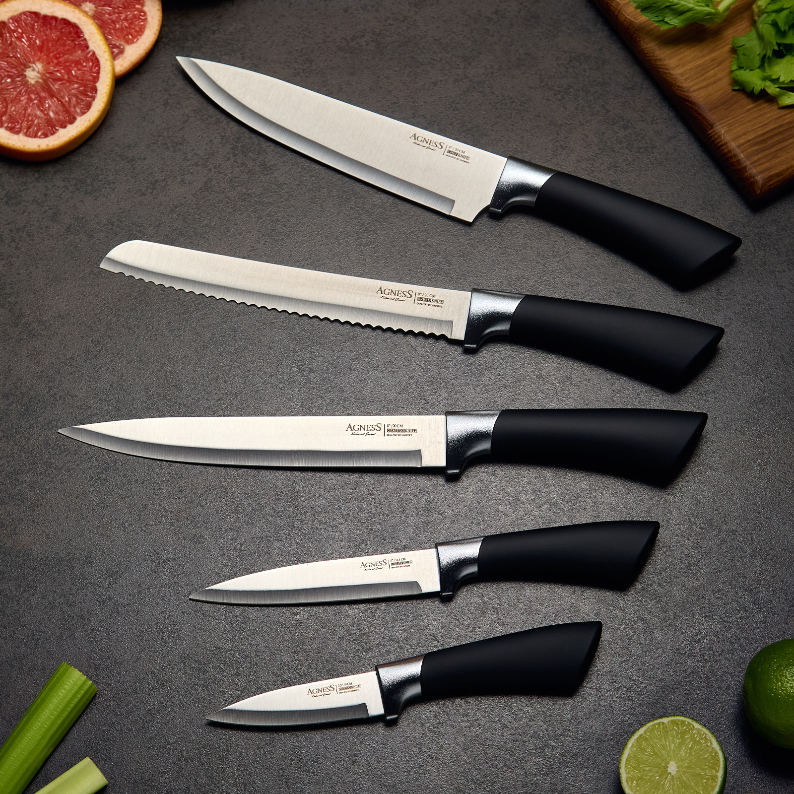 Нож - главный инструмент на кухне, а вернее ножи, т.к. даже самый лучший нож не сможет справиться со всем многообразием задач. Выбирая набор ножей AGNESS - Вы приобретаете комплект самых необходимых и чаще всего используемых ножей. Преимущества ножей AGNESS: