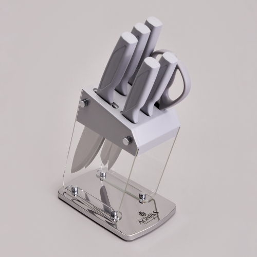 НАБОР НОЖЕЙ AGNESS НА ПЛАСТИКОВОЙ ПОДСТАВКЕ, 7 ПРЕДМЕТОВ