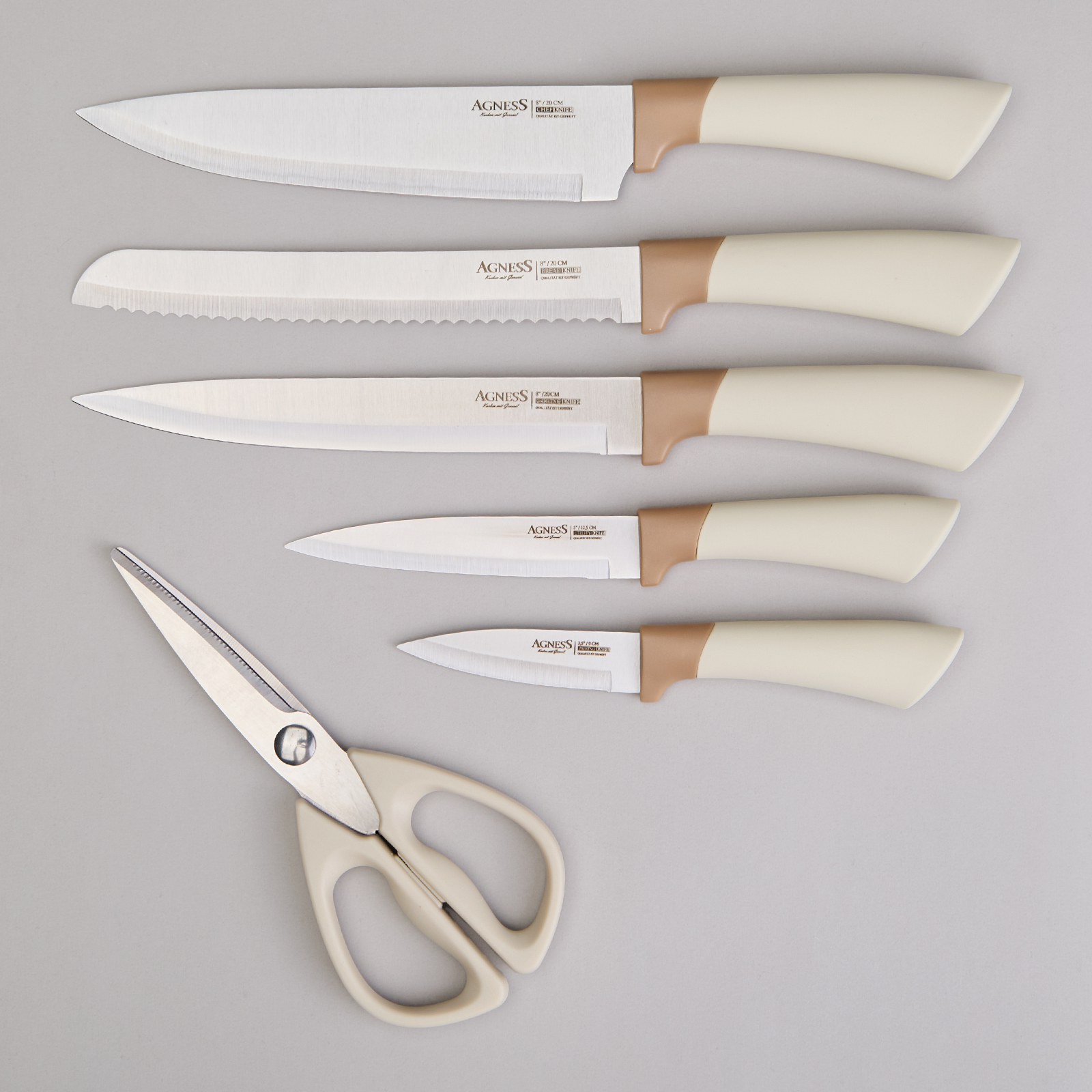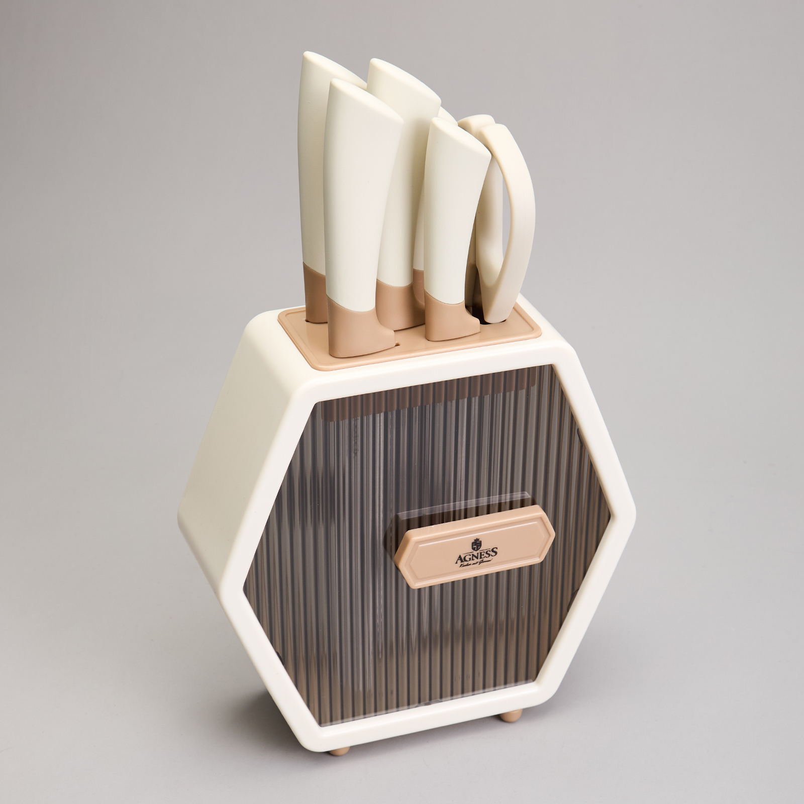 НАБОР НОЖЕЙ AGNESS НА ПЛАСТИКОВОЙ ПОДСТАВКЕ, 7 ПРЕДМЕТОВ