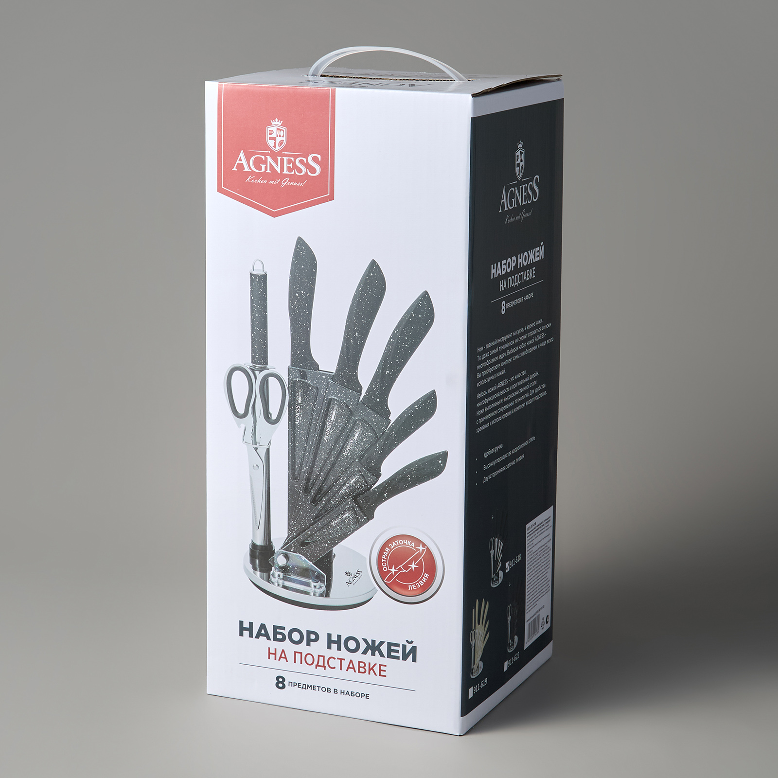Нож - главный инструмент на кухне, а вернее ножи, т.к. даже самый лучший нож не сможет справиться со всем многообразием задач. Выбирая набор ножей AGNESS - Вы приобретаете комплект самых необходимых и чаще всего используемых ножей. Преимущества ножей AGNESS: