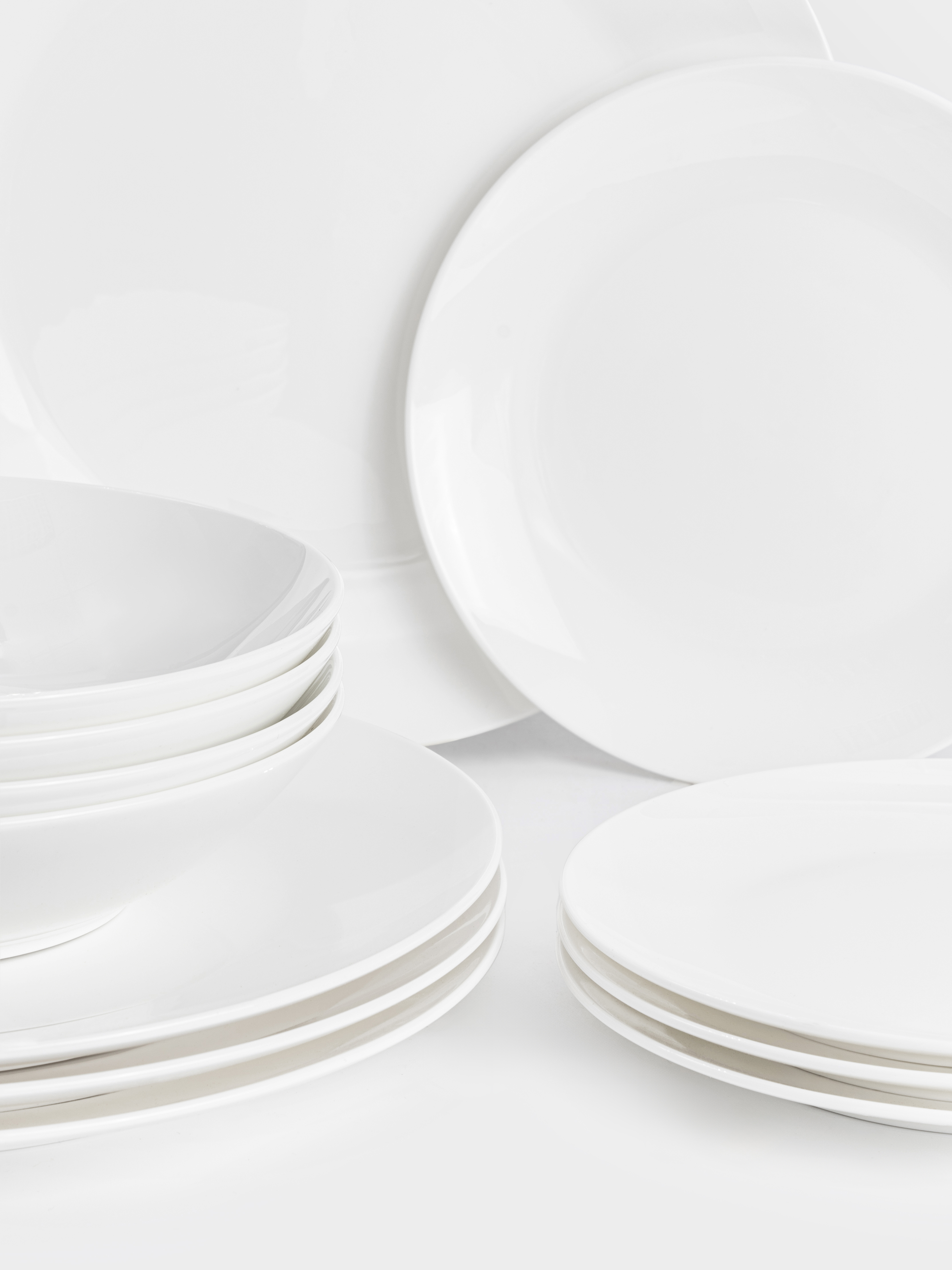 Сервиз обеденный, 4 перс, 12 пр, фарфор F, белый, Cashmere. Материал: фарфор Fine Bone China. Мыть тёплой водой с применением жидких моющих средств и в посудомоечной машине. Можно использовать в СВЧ.