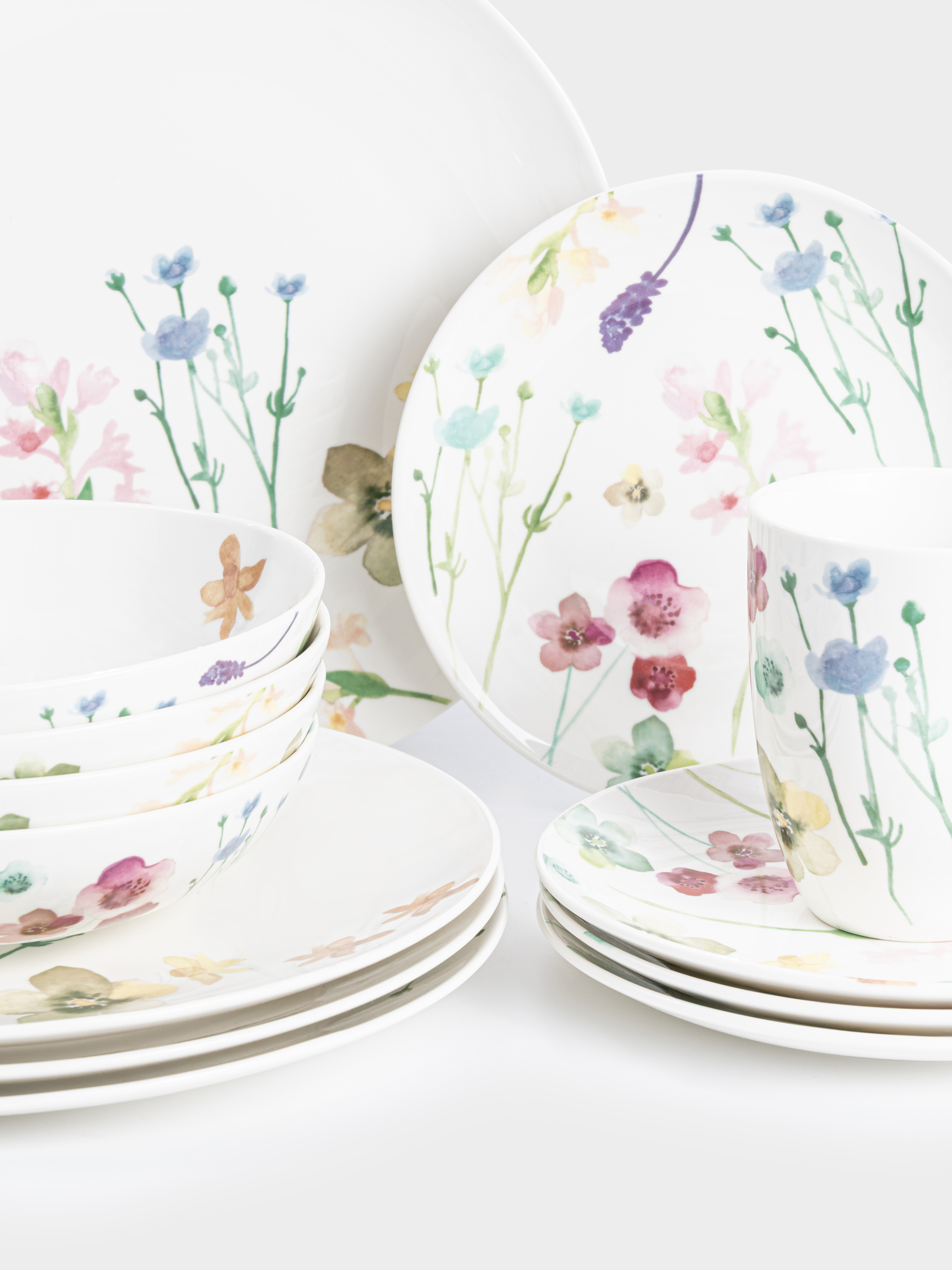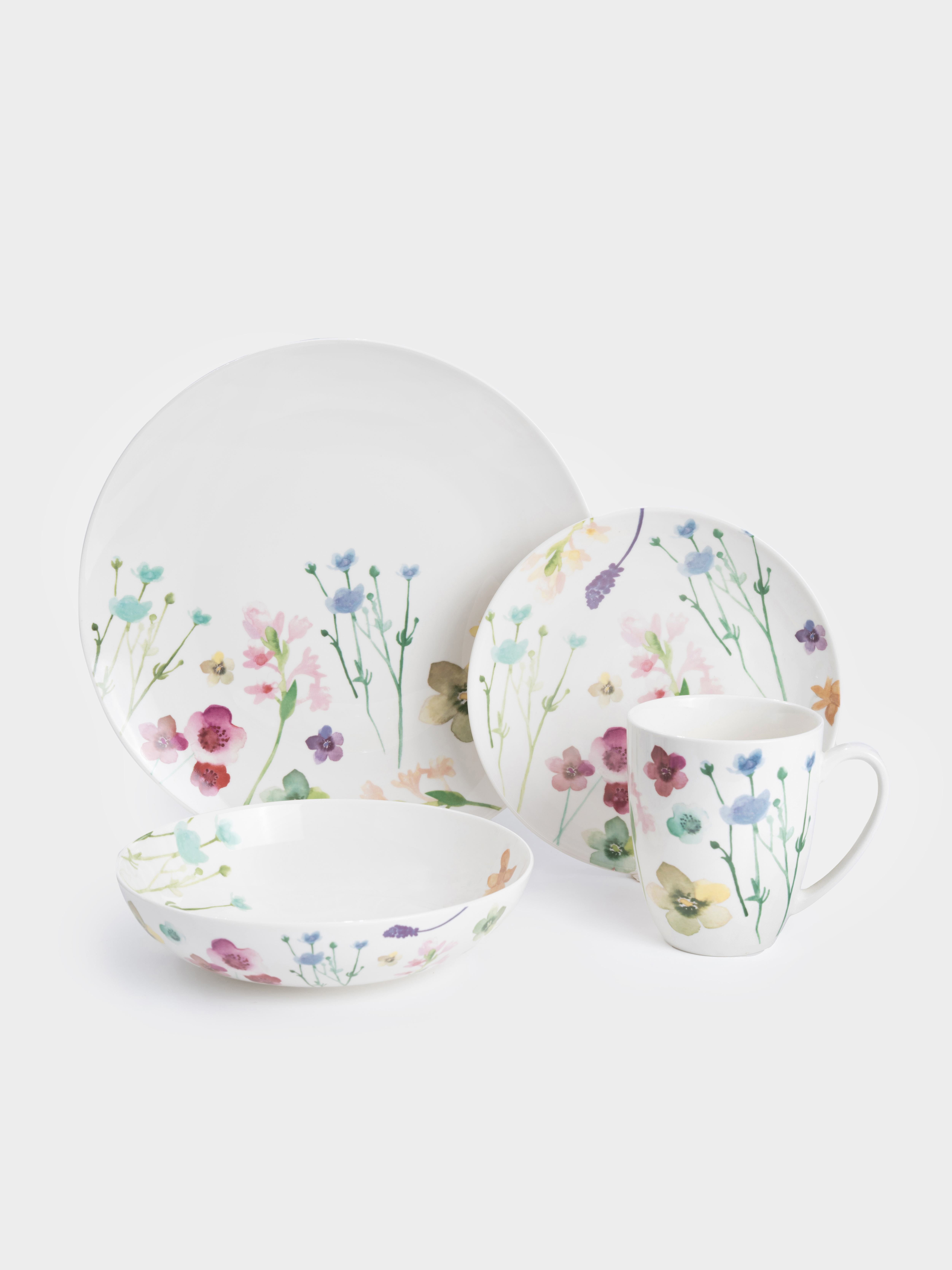 Сервиз обеденный, 4 перс, 16 пр, фарфор P, белый, Цветы, Wildwood. Материал: фарфор Рorcelain. Мыть тёплой водой с применением жидких моющих средств и в посудомоечной машине. Можно использовать в СВЧ.