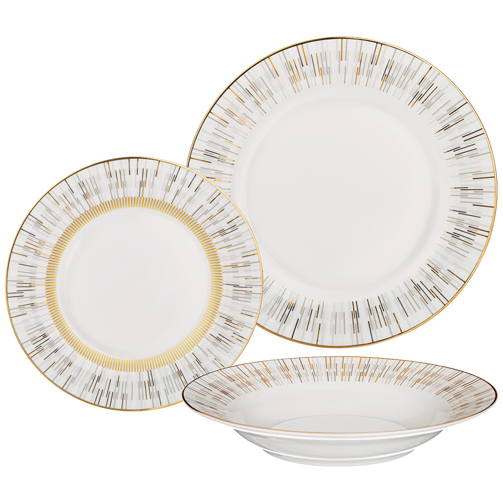 Комплектность: тарелка обеденная 25,5 см - 6 шт., тарелка закусочная 20,5 см - 6 шт., тарелка суповая 22,5 см - 6 шт.