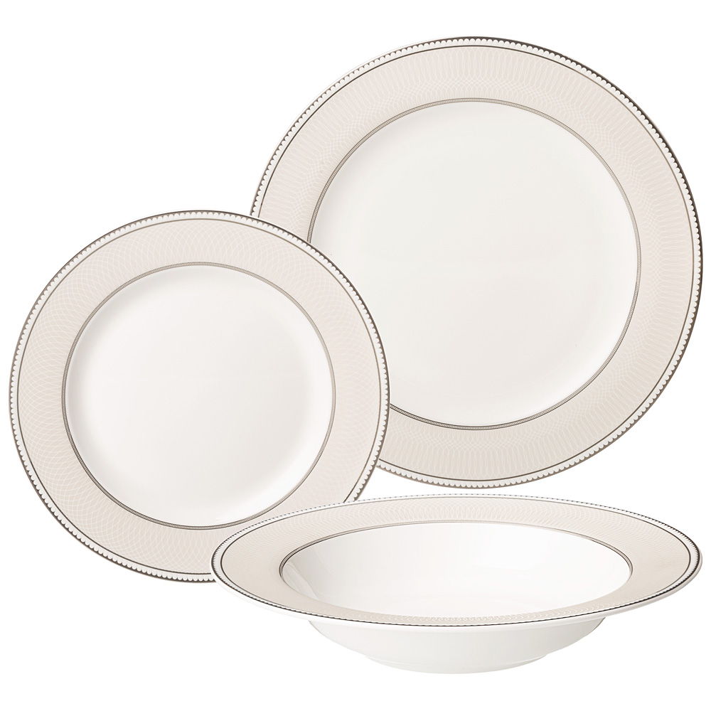 Комплектность: тарелка обеденная 25,5 см - 6 шт., тарелка закусочная 20,5 см - 6 шт., тарелка суповая 22,5 см - 6 шт.