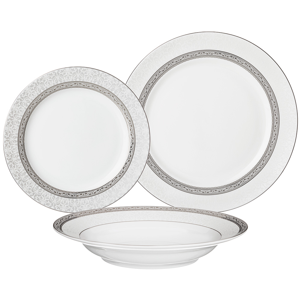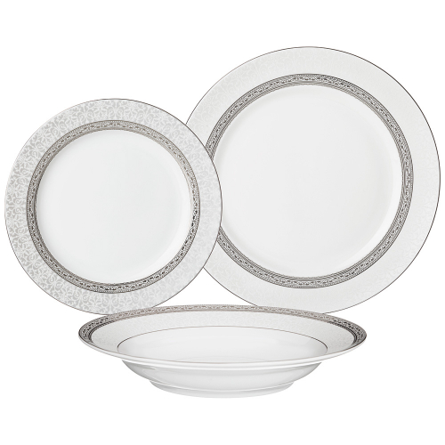 Комплектность: тарелка обеденная 25,5 см - 6 шт., тарелка закусочная 20,5 см - 6 шт., тарелка суповая 22,5 см - 6 шт.