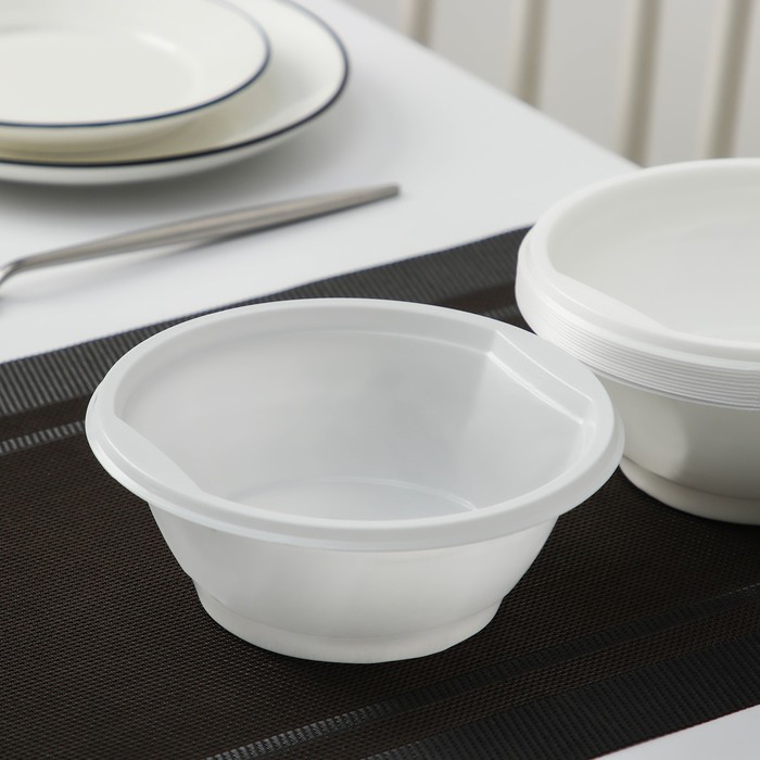 Тарелки одноразовые для супа Мистерия, набор 12 шт., 600 мл, пластик, белые