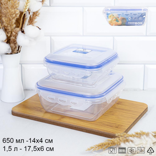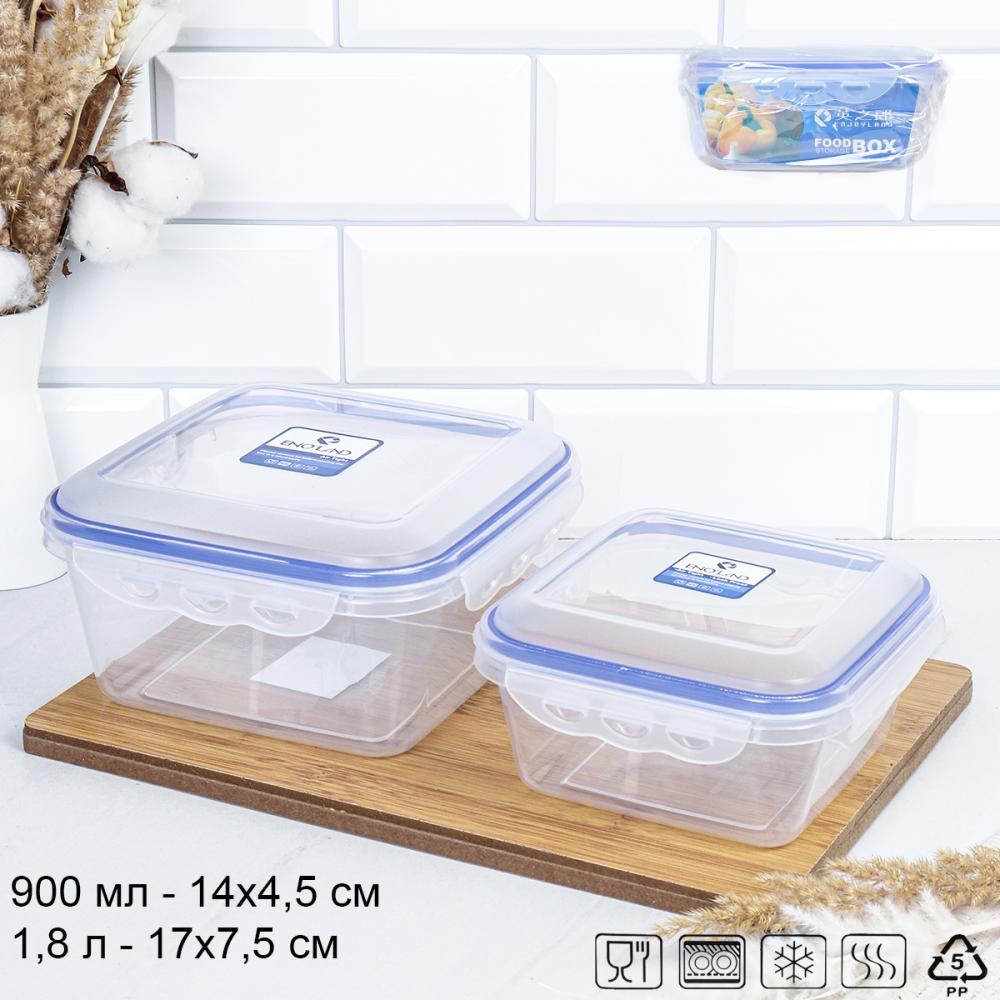 Набор пластиковых контейнеров Люкс квадратный 2 штуки 900/1800 мл / ZP2032B /уп 36/ ДОП СКИДКА НА КОРОБ 3%