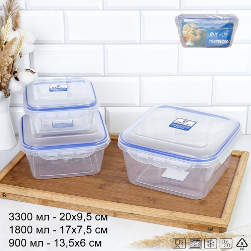 Набор пластиковых контейнеров Люкс квадратный 3 штуки 900/1800/3300 мл / ZP3035B /уп 24/ ДОП СКИДКА НА КОРОБ 3%