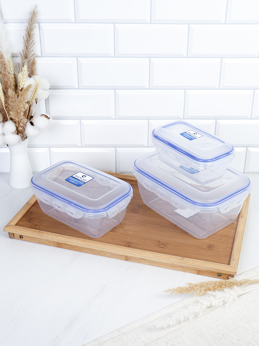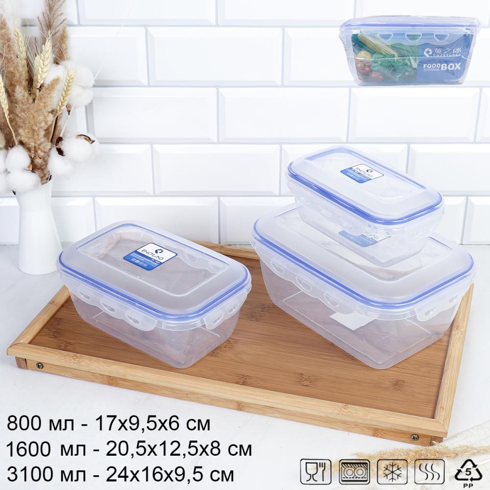 Набор пластиковых контейнеров Люкс прямоугольный 3 штуки 800/1600/3100 мл / CP3034B /уп 24/ ДОП СКИДКА НА КОРОБ 3%