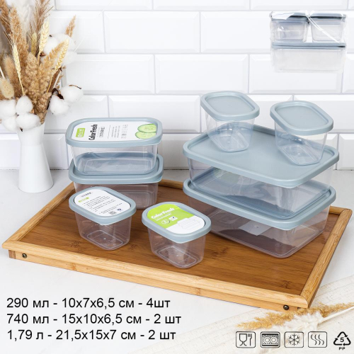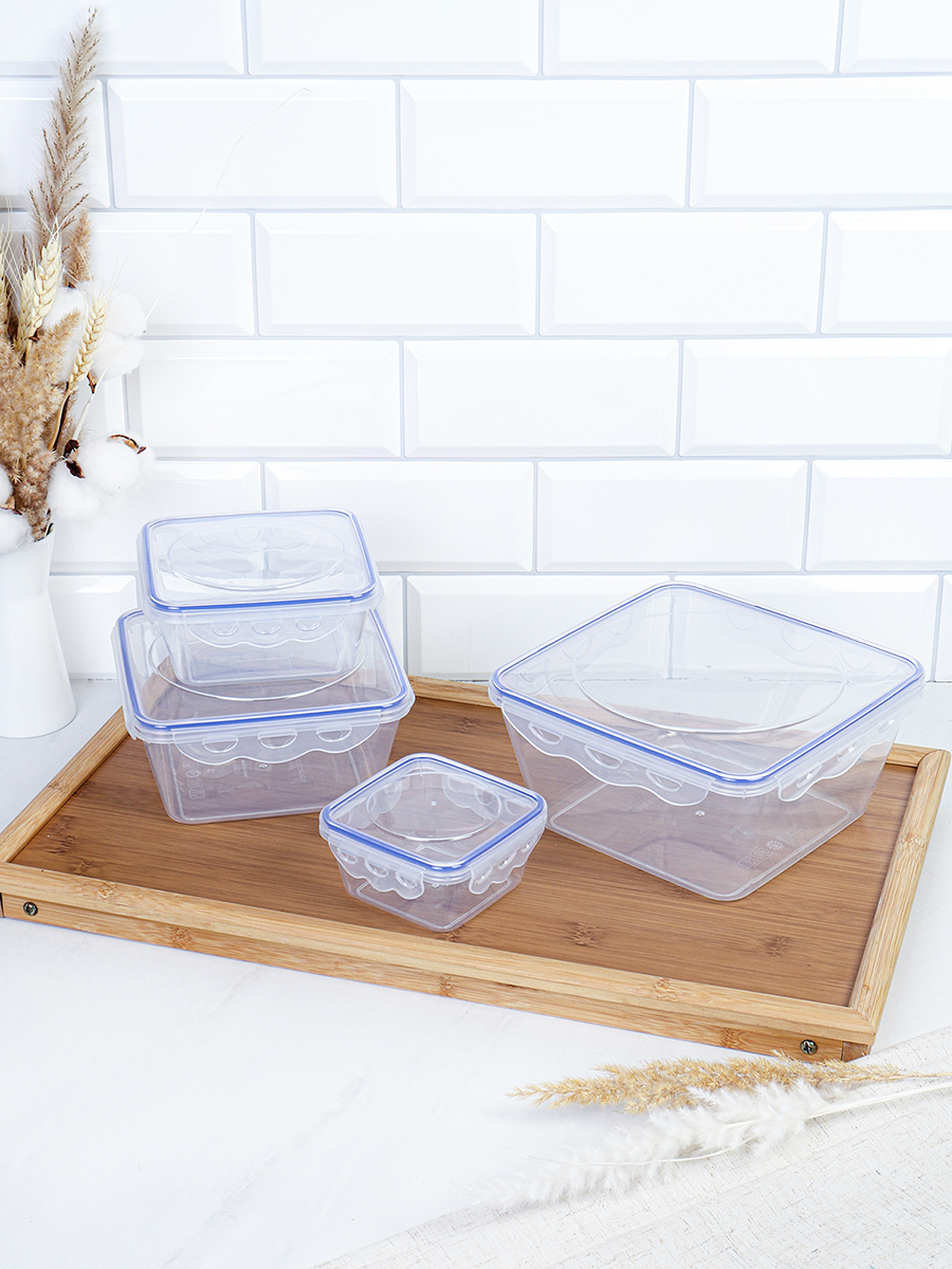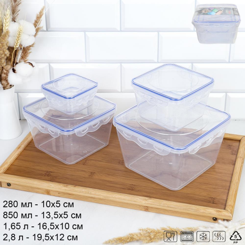 Набор пластиковых контейнеров Стандарт квадратный 4 штуки 280/570/1200/2150 мл / 90403 /уп 24/ ДОП СКИДКА НА КОРОБ 3%