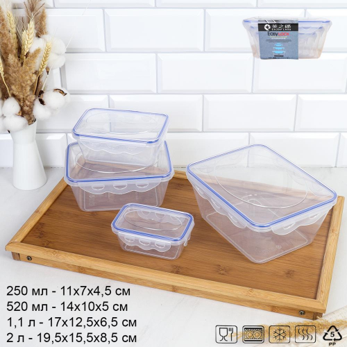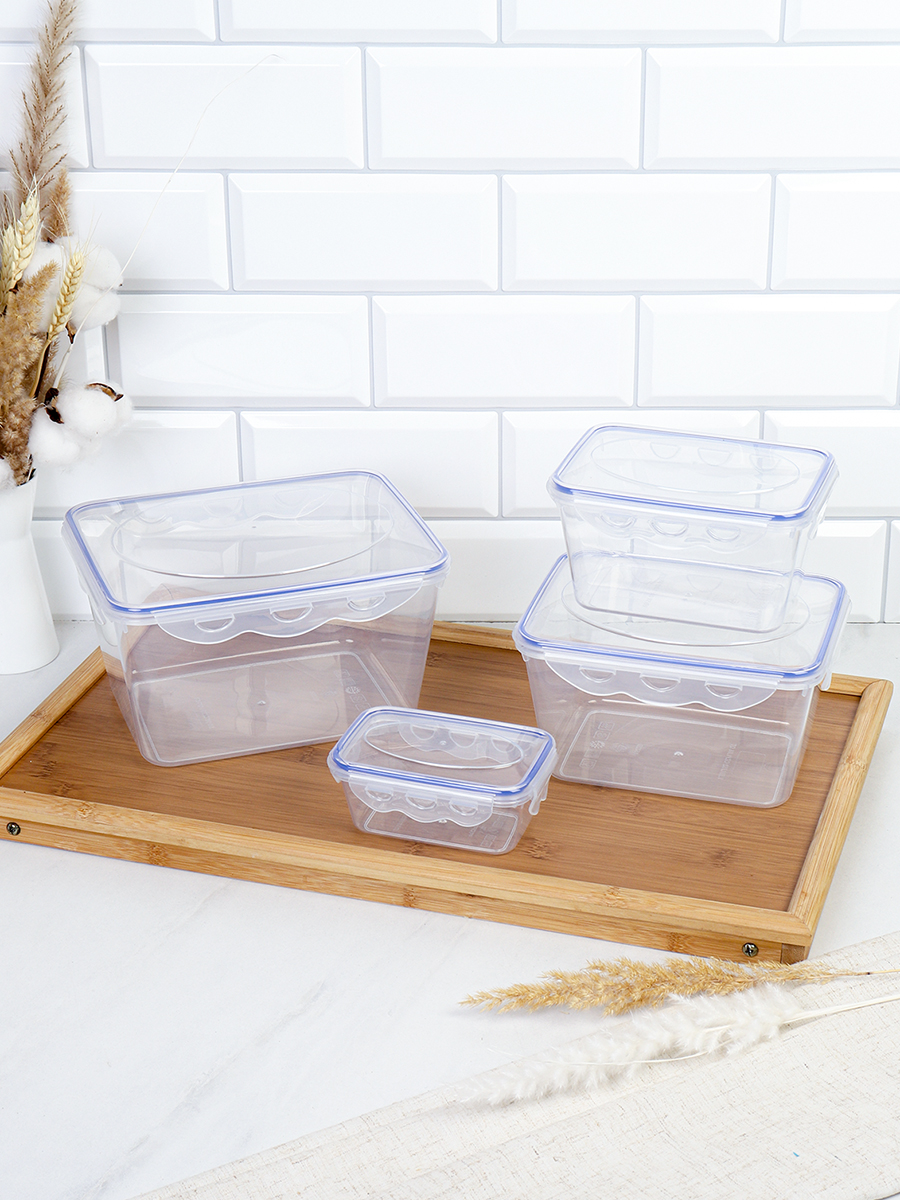 Набор пластиковых контейнеров Стандарт прямоугольный 4 штуки 250/800/1500/2700 мл / 90402 /уп 24/ ДОП СКИДКА НА КОРОБ 3%