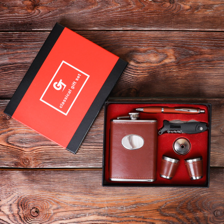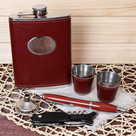 Набор подарочный 6 в 1 / FL-130 /уп 60/ фляжка 250 мл, 2 стопки, ручка, открывалка, воронка