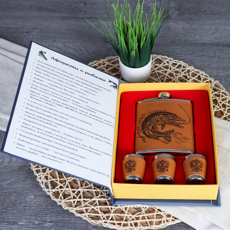 Набор подарочный Афоризмы о рыбалке фляжка + 3 стопки, в подарочной коробке.