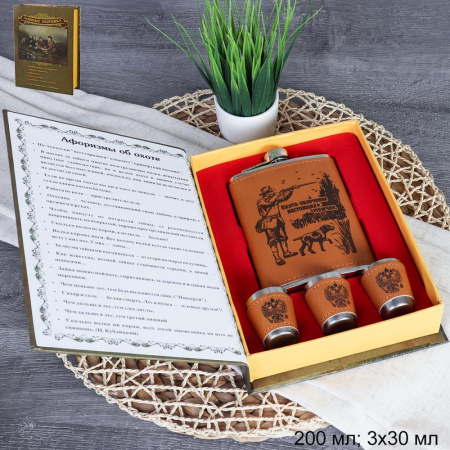 Набор подарочный Афоризмы о рыбалке фляжка 200 мл + 3 стопки 30 мл / FL-214 /уп 60/