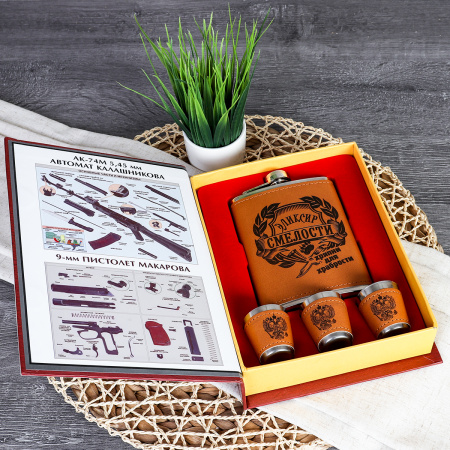 Набор подарочный Эликсир смелости фляжка 200 мл + 3 стопки 30 мл / FL-210 /уп 60/