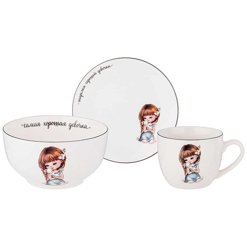 НАБОР ПОСУДЫ LEFARD ХОРОШАЯ ДЕВОЧКА, 3 ПР.: САЛАТНИК 470МЛ, ТАРЕЛКА 20СМ, КРУЖКА 220МЛ
