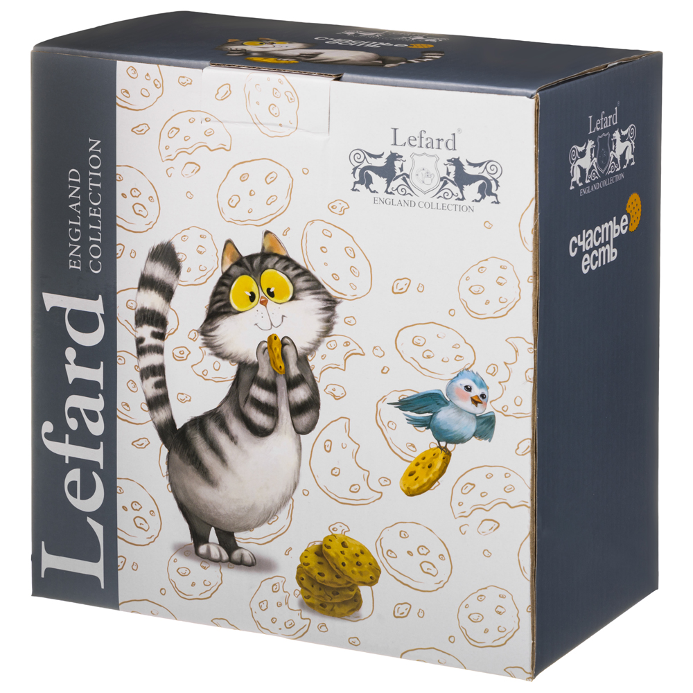Всем, кто полон энергии и задора, любит кофе и следит за фигурой посвящается коллекция «Счастье есть» от ТМ LEFARD. Это лучший подарок детям, родителям, друзьям и коллегам. Поднимайте настроение вместе с веселым котиком, верьте, Счастье есть! Кружки, наборы посуды, салатники, закусочные и обеденные тарелки выполнены из высококачественного фарфора. Удобные формы и размеры. Красочная упаковка. Продукция прошла сертификацию, безопасна для контакта с пищевыми продуктами. Можно использовать в микроволновой печи, мыть в посудомоечной машине.
