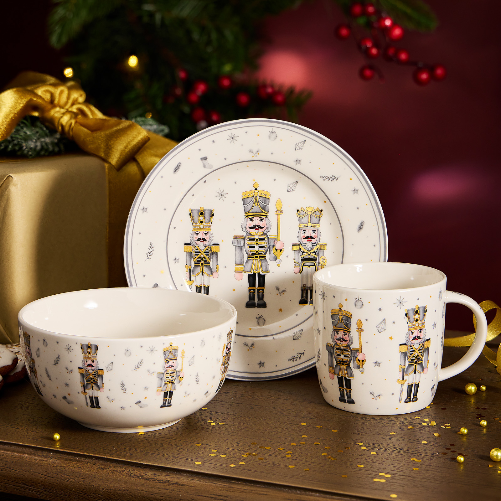 ТМ LEFARD коллекция «Nutcracker» - Щелкунчик создана по мотивам одноименной истории, с которой знакомы все дети и взрослые. Волшебная история о новогоднем чуде идеально подходит для создания праздничного настроения. Набор выполнен из качественного фарфора. Прямые современные формы, удобные объемы. Стильная, подарочная упаковка. Дарите сказку друзьям и близким людям! Посуду можно использовать в СВЧ и мыть в посудомоечных машинах.