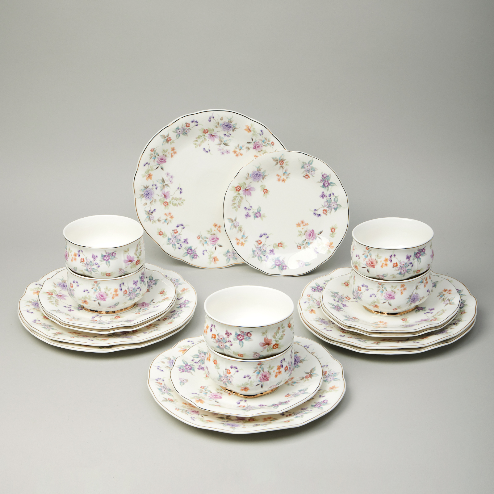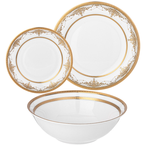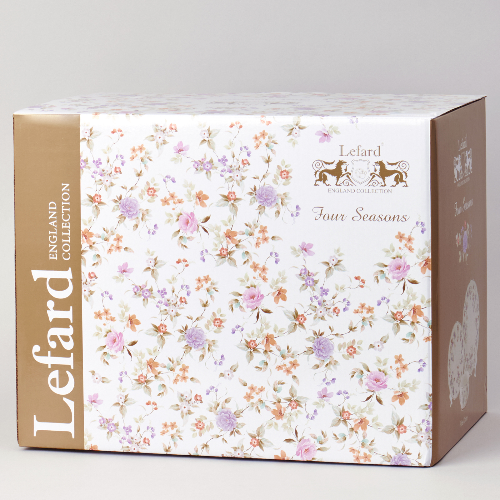 ТМ LEFARD коллекция "Времена года" выполнена из тонкостенного фарфора. Стильная форма, вместительный объем, модное сочетание пастельных тонов и цветочной деколи, отделка золотом - все это делает коллекцию неотразимой и очень привлекательной. Форма и цвет посуды способны оказать магическое действие на всех, кто находится за столом. «Времена года» могут согреть душу, создать тепло и уют в доме. Это прекрасный подарок. Продукция прошла сертификацию и безопасна для контакта с пищевыми продуктами. Можно ставить в микроволновую печь, не рекомендуется мыть в посудомоечной машине. Комплектность: тарелка обеденная 26,5*2,4 см - 6 шт., тарелка десертная 20*2 см - 6 шт., салатник 12*6,5 см 440 мл - 6 шт.
