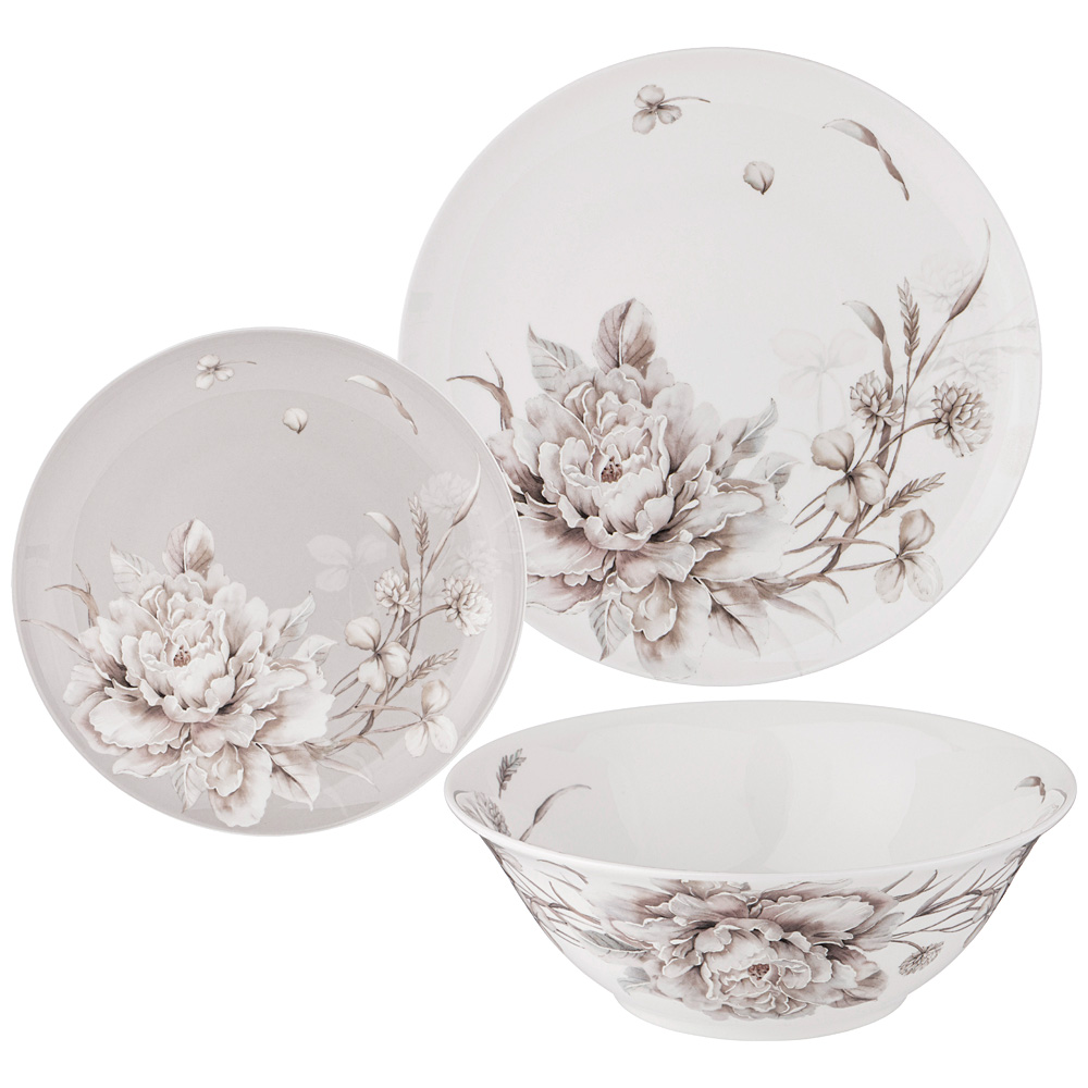Комплектация: тарелка обеденная 25,5см - 4 шт., тарелка закусочная 20,5см - 4 шт., салатник-тарелка суповая 750мл 18см - 4 шт.