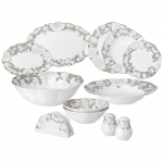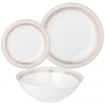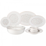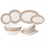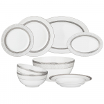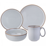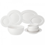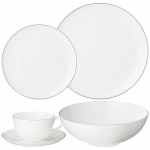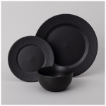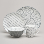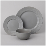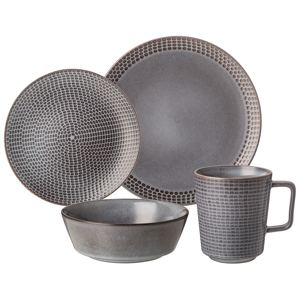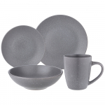 Коллекция ТМ BRONCO Graphite глубокого серого цвета с великолепным графическим подглазурным рисунком и стильной удобной формы оптимальных размеров. Все изделия выполнены из высокотемпературной каменной керамики и обожжены при температуре от 1100 до 1400 градусов. При такой температуре вода и воздух из глиняной массы полностью испаряются и изделия становятся легче, плотнее, крепче, приближаясь по своим характеристикам к фарфору. Современные рестораторы выбирают каменную керамику именно из-за её прочности и стойкости к перепадам температур. Поверхность изделий покрыта глянцевой реактивной глазурью. Изделия не впитывают вкусы и запахи продуктов, хорошо сохраняют тепло и холод. Они легки в уходе, вызывают приятные тактильные ощущения, длительное время сохраняют первоначальный внешний вид. Каменную керамику можно мыть в посудомоечной машине, использовать в микроволновой печи. Комплектность: тарелка обеденная 25 см 4 шт., тарелка закусочная 20,5 см 4 шт., салатник 16,5*5,5 см 4 шт., кружка 400 мл 4 шт.